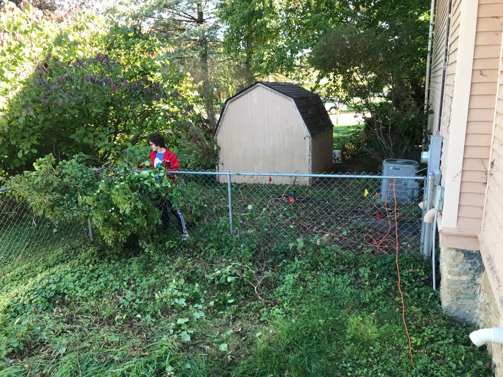 The back yard had a fence when we purchased it, but it was an ugly chain -link fence that only enclosed part of the back yard. It was very difficult to navigate around and caused the whole back yard to have less useable space. So, we removed it. In addition, we cleaned up the space, removing brush and plants to open up one large L shaped backyard on the north and part of the west sides of our home.
